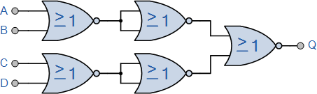 따라서 이 4입력 NOR 게이트에 대한 부울 표현식은 다음과 같습니다. Q = A+B+C+D