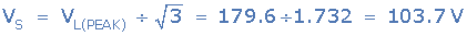 여기서: V S 는 (V L(PEAK) ¼ √ 3 )과 같고 V L(PEAK) 는 최대 선간 전압(V L *1.414)입니다.
