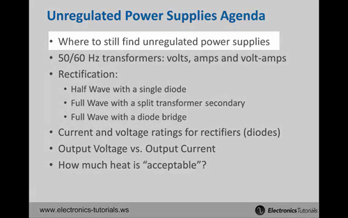 시리즈의 1부에서는 테스트를 시작하는 데 필요한 기본 공급 장치에 대해 설명했습니다. 이제 출력을 적극적으로 제어하지 않는 일부 전원 공급 장치를 살펴보겠습니다. 규제되지 않은 공급 장치인 이러한 유형의 공급 장치는 규제된 전원 공급 장치를 만드는 데 점점 더 저렴해지기 때문에 점점 덜 일반적이지만, 여전히 오래된 비규제 공급 장치로부터 많은 것을 배울 수 있습니다.