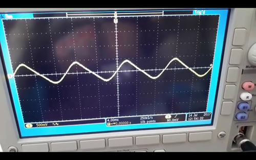 이제 회로에 부하가 걸리기 때문에 주목해야 할 또 다른 중요한 점은 실제로 약간의 잔물결을 볼 수 있다는 것입니다. 확대해야 했고 이제 이것은 구간당 500mV이지만 로드된 케이스와 로드되지 않은 케이스의 차이를 확실히 볼 수 있습니다.