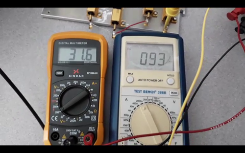 시간: 5:16s 동일한 실험을 다시 수행하지만 이번에는 오실로스코프 프로브가 실제 DC 출력 전압을 테스트합니다. 여기 멀티미터에서 약 38V가 표시됩니다. 제가 한 작업은 오실로스코프를 사용하여 구간당 단 2V의 AC 결합 모드로 전환한 것입니다. 여기에서 볼 수 있듯이 매우 매끄러우며 이는 부하가 없기 때문입니다.