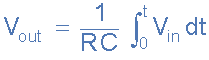 여기서 우리는 적분기에 대한 이상적인 전압 출력을 다음과 같이 도출합니다.