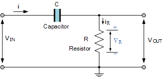 따라서 낮은 입력 주파수에서는 커패시터의 리액턴스 X C가 높아 DC 전압을 차단하거나 입력 신호가 느리게 변합니다. 높은 입력 주파수에서는 커패시터 리액턴스가 낮아서 빠르게 변화하는 펄스가 입력에서 출력으로 직접 전달됩니다.