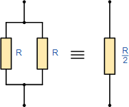 병렬로 연결된 두 개의 저항 또는 임피던스가 동일하고 동일한 값인 경우 총 또는 등가 저항 RT는 한 저항기 값의 절반과 같습니다. 이는 R/2와 같고 3개의 동일한 저항이 병렬로 연결된 경우 R/3 등입니다.