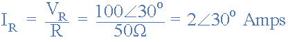 V(t) = 100 x cos(Ωt + 30o ) 로 정의된 정현파 전압 공급 장치는 50Ω의 순수 저항에 연결됩니다. 임피던스와 회로를 통해 흐르는 전류의 피크 값을 결정합니다. 해당 페이저 다이어그램을 그립니다.