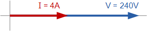 페이저는 피크 또는 최대값을 나타내는 벡터와 달리 전압 및 전류량의 RMS 값을 나타내므로 위의 시간 영역 표현의 피크 값을 √2로 나누면 해당 전압 -전류 페이저 관계는 다음과 같습니다.