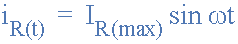 반면, 저항에 흐르는 순간 교류 전류는 다음과 같이 주어진다: i = I m sin(Ωt)