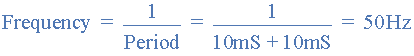 구형파 모양의 파형의 경우 듀티 사이클은 50%로 제공되므로 파형의 주기는 10ms + 10ms 또는 20ms 와 같아야 합니다.