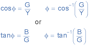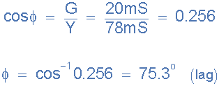 이제 어드미턴스 삼각형이 있으므로 피타고라스를 사용하여 그림과 같이 세 변의 크기와 위상각을 모두 계산할 수 있습니다.