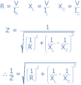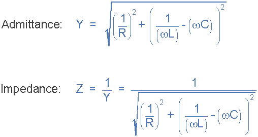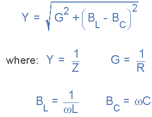 병렬 RLC 회로의 최종 방정식은 각 요소가 임피던스의 역수( 1/Z ) 가 되므로 각 병렬 분기에 대해 복잡한 임피던스를 생성한다는 것을 알 수 있습니다 . 임피던스의 역수는 일반적으로 어드미턴스(Admittance) , 기호( Y )라고 합니다.