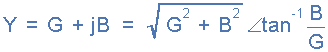 병렬 RLC 회로의 어드미턴스 Y 는 복소수이므로 직렬 회로의 일반적인 임피던스 형식 Z = R + jX 에 해당하는 어드미턴스는 실수부 G 가 다음과 같은 병렬 회로의 경우 Y = G – jB 로 작성됩니다. 컨덕턴스와 허수부 jB 는 서셉턴스입니다. 극형에서는 다음과 같이 주어집니다.