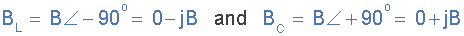 따라서 유도성 및 용량성 서셉턴스를 다음과 같이 정의할 수 있습니다.