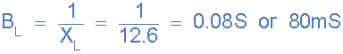 서셉턴스는 리액턴스의 역수이므로 유도성 회로에서는 유도성 서셉턴스 B L 은 음의 값이 되고, 용량성 회로에서는 용량성 서셉턴스 B C 는 양의 값이 됩니다. 각각 X L 및 X C와 정반대입니다 .