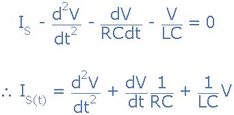 도함수를 취하여 위의 방정식을 C 로 나눈 다음 다시 정리하면 다음과 같은 회로 전류에 대한 2차 방정식이 제공됩니다. 회로에는 인덕터와 커패시터라는 두 개의 반응성 요소가 있기 때문에 2차 방정식이 됩니다.