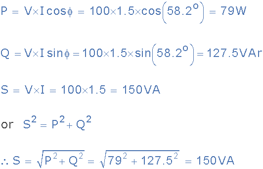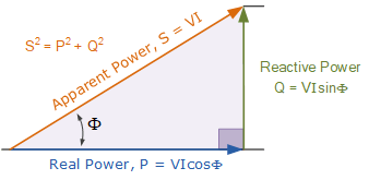 그러면 무효 전력은 서로 90o 위상차인 볼트와 암페어의 곱을 나타내지 만 일반적으로 전압과 전류 사이에는 임의의 위상각(Φ)이 있을 수 있습니다.