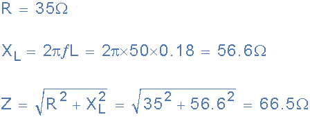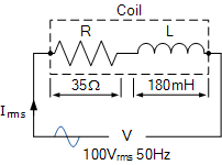 주어진 데이터: R = 35Ω, L = 180mH, V = 100V 및 f = 50Hz.
