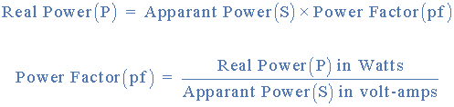 그런 다음 실제 전력, 피상 전력 및 회로 역률 간의 관계를 다음과 같이 쓸 수 있습니다.