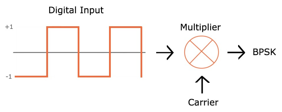 이를 한 단계 더 발전시키자면, 사인파에 -1을 곱하는 것은 그것을 반전하는 것과 같다는 것을 알고 있습니다. 이는 다음의 기본 하드웨어 구성을 사용하여 BPSK를 구현할 수 있는 가능성을 가져옵니다.