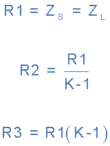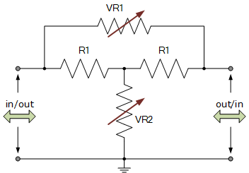 회로의 두 개의 고정 직렬 저항기 R1은 항상 전송선 특성 임피던스와 동일합니다.