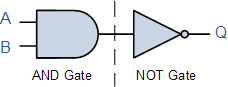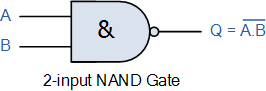 논리 NAND 기능은 두 개의 별도 논리 기능인 AND 기능과 NOT 기능(NOT-AND)을 직렬로 조합한 것입니다. 논리 NAND 함수는 AB 의 불리언 표현으로 표현될 수 있습니다.