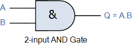 AND 기능은 점 또는 마침표 기호( . )로 전자적으로 표시됩니다. 따라서 2입력( AB ) AND 게이트에는 부울 표현식 A 로 표시 되는 출력 항이 있습니다 . B 또는 그냥 AB .