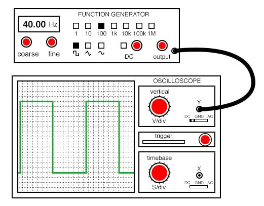 DC 결합을 사용하면 오실로스코프가 신호 발생기에서 나오는 사각파의 모양을 정확하게 표시합니다.