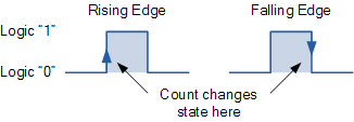 일반적으로 동기 카운터는 클럭 신호가 로우에서 하이로 전환되는 상승 에지에서 카운트되고 비동기 리플 카운터는 클럭 신호가 하이에서 로우로 전환되는 하강 에지에서 카운트됩니다.