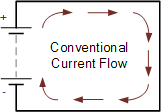 그런 다음 기존 전류 흐름은 양극에서 음극으로 전류의 흐름을 제공하며 이는 실제 전자 흐름의 방향과 반대입니다.